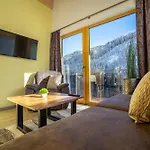 Alpenhof Chalets Appartement biedt een opslagruimte, een balkon en een zitruimte en is ingericht met een bank, en moderne gemakken zoals een satelliet-TV. Tot de veiligheidsvoorzieningen op de kamer behoren een kluis en een elektronische sleutelkaart. Er worden bedden met hypoallergene donzen kussens, hypoallergische kussens en niet-allergene kussens verstrekt. De accommodatie heeft ook een apart toilet, een badkuip en een douche. Verder zijn er een haardroger en badlakens beschikbaar.